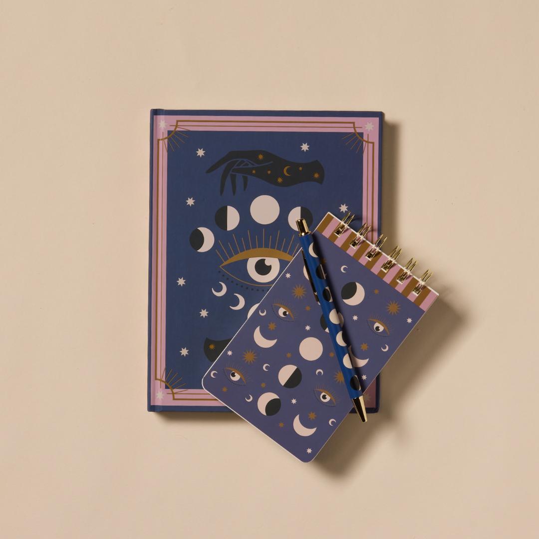 Un set pensado para quienes aman la papelería con personalidad. Inspirado en motivos celestiales —soles, lunas y detalles dorados— este conjunto combina diseño, funcionalidad y estilo en una propuesta perfecta para regalar (o regalarte).