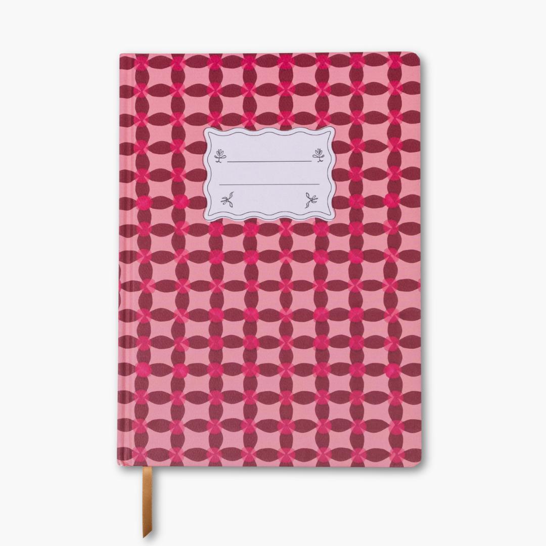 240 hojas rayadas. Perfecto para notas, ideas, journaling o trabajo diario. Con cinta marcapáginas y diseño geométrico vibrante.