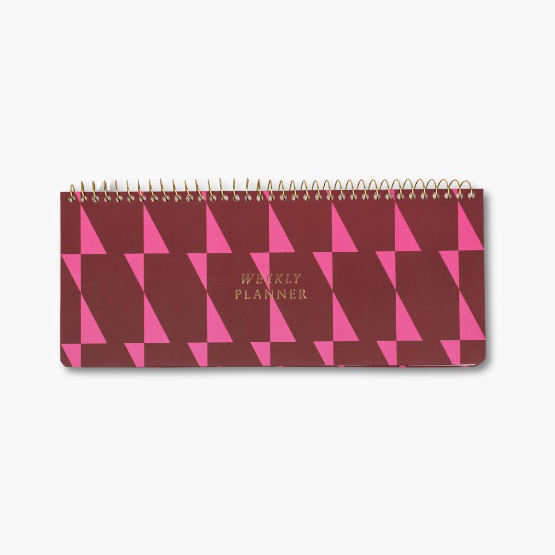 80 hojas con vista semanal para organizar tareas, citas y objetivos de un vistazo. Encuadernado con espiral metálica dorada.